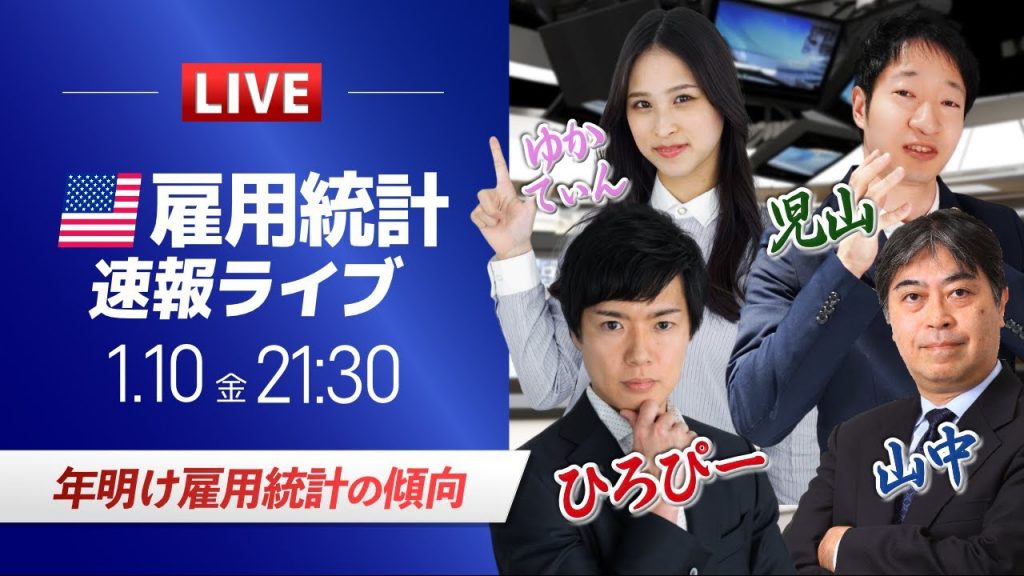 専業トレーダーから開発会社社長に転身したひろぴーと、大手米系銀行でインターバンクディーラーとして活躍した山中康司氏と、金融メディアから専業トレーダー経験のあるFX歴15年の児山と、テクニカルアナリストゆかてぃんが米国雇用統計を解説します。